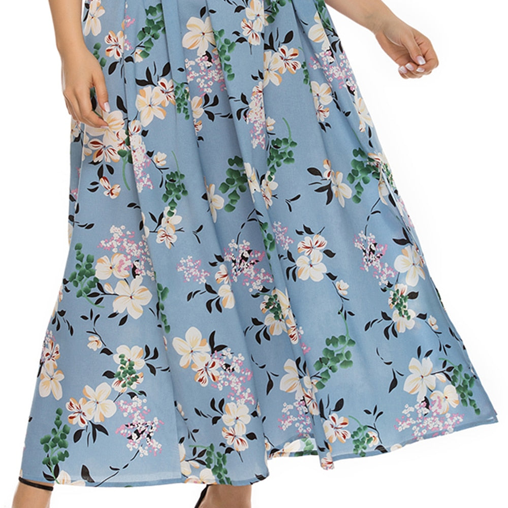 This Hot Sale European And American Style V-Neck Plus Size Printed Bohemia Summer Dresses For Women has a fashionable, eye-catching design with a unique V-neck for an outstanding look. Made of quality materials, it's comfortable and durable, ideal for a long summer of outdoor activities. It has an A-line silhouette for a figure-flattering fit and comes in a variety of colors and patterns.
